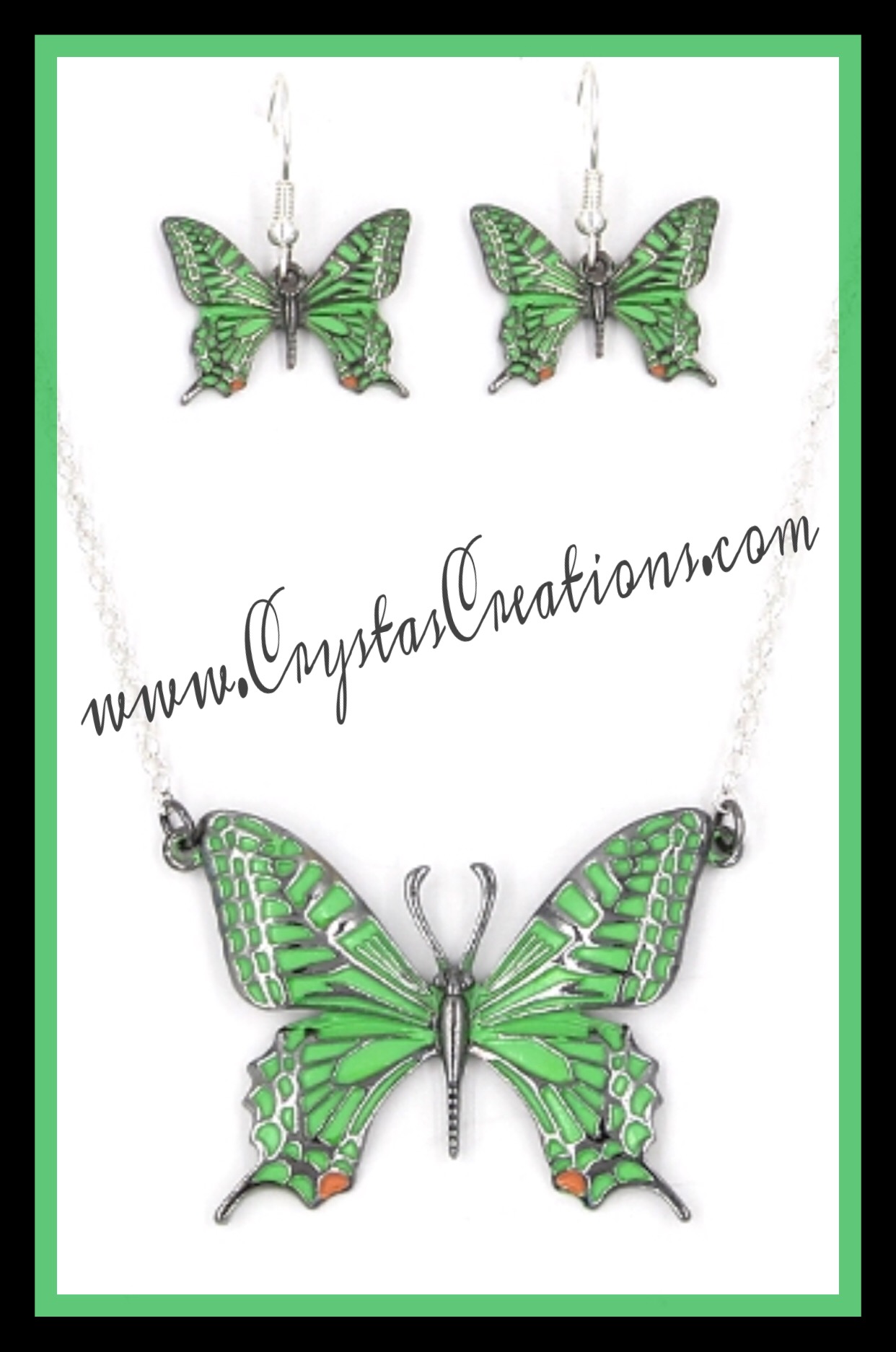 Green Butterfly Necklace & Earring Set