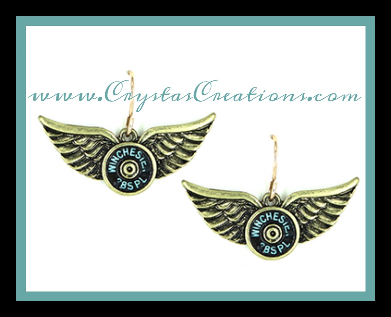 WIN 38SPL Faux Bullet Earrings w/Wings Patina